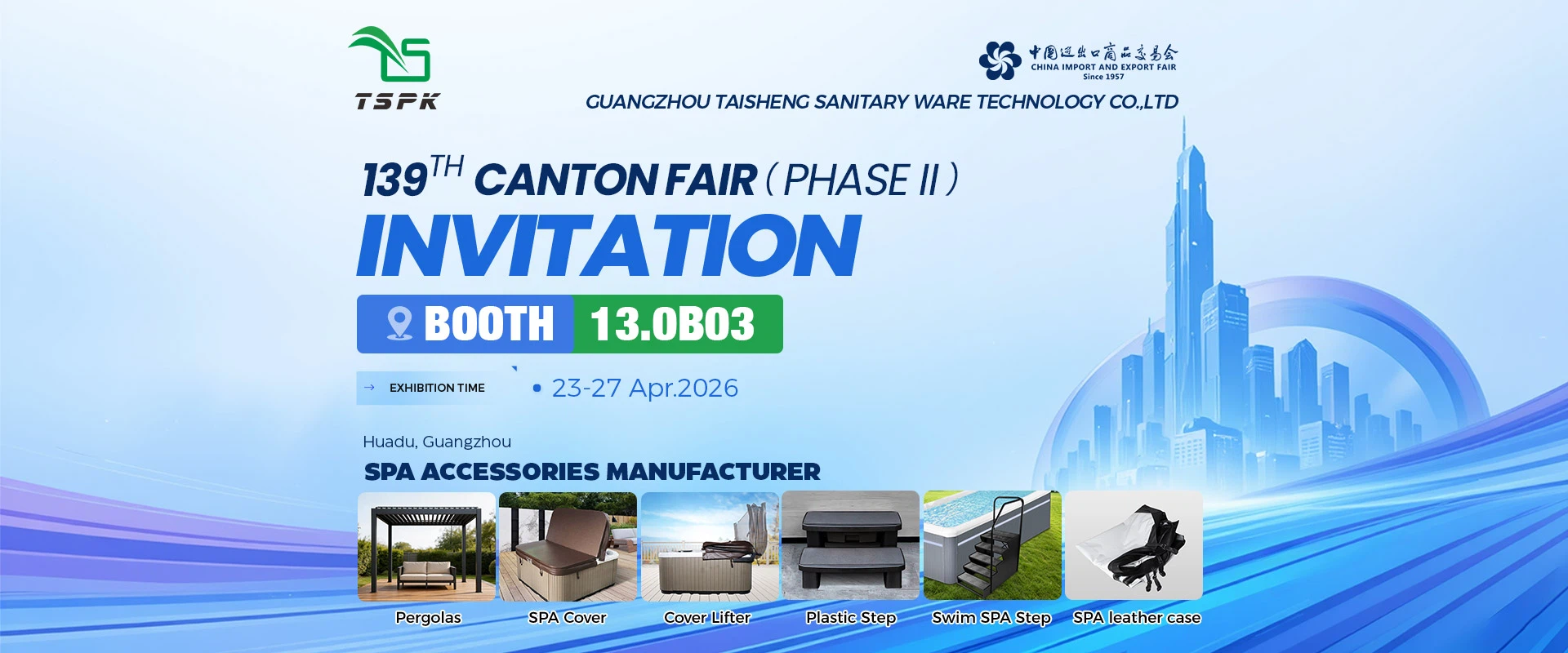 Guangzhou Taisheng Sanitary Ware Technology Co., Ltd, establerta el 2003 i ubicada a la ciutat de Guangzhou, és el fabricant més professional de cobertes i accessoris de spa a la Xina. Amb una gran experiència oferint al client múltiples solucions OEM per satisfer els seus requisits més importants, i amb la determinació i les accions desenvolupades i millorades contínuament, ens hem guanyat amb més oportunitats de treballar amb empreses de primer nivell mundial i, amb honor, gaudim d'una gran reputació a Europa. i mercats nord-americans. Els nostres productes emblemàtics són la coberta per caminar, la coberta tèrmica addicional, la coberta enrotllable d'hivern, la coberta de bany en forma d'H, elevadors hidràulics, escales de bany sintètic i un pas de plàstic d'emmotllament per injecció.